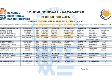 Τοπική Επιτροπή Λέσβου2026-03-20T10:35:15+02:00ΑΠΟΤΕΛΕΣΜΑΤΑ & ΒΑΘΜΟΛΟΓΙΕΣ ΑΓΩΝΩΝ 14-15/03/26
