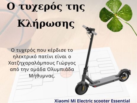 Τοπική Επιτροπή Λέσβου2023-04-10T12:55:42+02:00Το ηλεκτρικό πατίνι κερδίζει ο παίκτης ή η παίκτρια με το νούμερο 91. Θα παραλάβετε το δώρο σας από την electronet Προδρόμου, 5ο χλμ Μυτιλήνης-Καλλονής.
