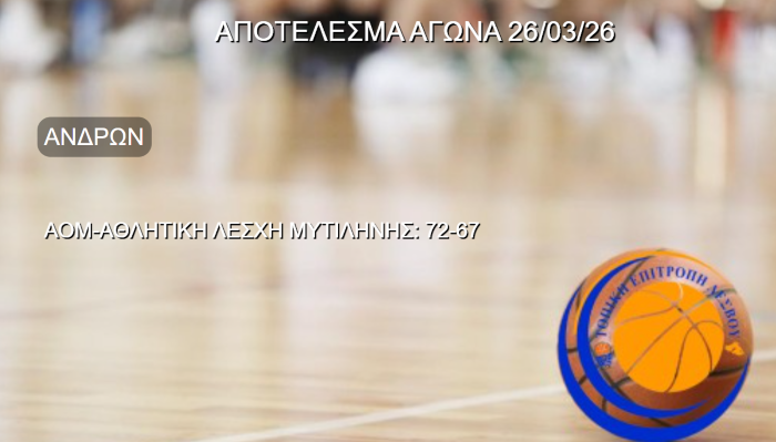 Μπαράζ ανόδου στη Γ' Εθνική2η Αγωνιστική Αθλητική Λέσχη Μυτιλήνης-Γ.Α.Σ Ιάλυσος: 46-95 Δεκάλεπτα: 16-28, 29-51, 39-70, 46-95 Επόμενος αγώναςΠαρασκευή 30/6 και ώρα 18:00Π.Α.Σ Ίκαρος-Αθλητική... read more