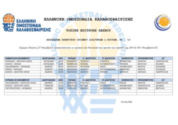 Βαθμολογίες Πρωταθλήματος Τ.Ε. Ε.Ο.Κ. Λέσβου 2023-2024 read more
