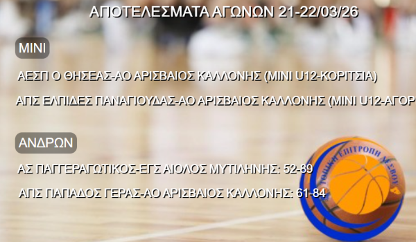 Αποτελέσματα αγώνων του Τουρνουά μικτών ομάδων Αιγαίου 23-24-25/03/2024
