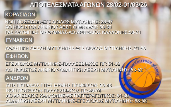 Βαθμολογίες Πρωταθλημάτων Τ.Ε. Ε.Ο.Κ. Λέσβου 2023-2024 read more