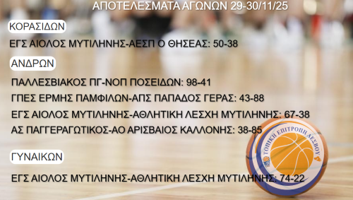 Βαθμολογίες Πρωταθλημάτων Τ.Ε. Ε.Ο.Κ. Λέσβου 2023-2024 read more