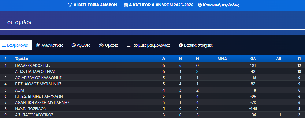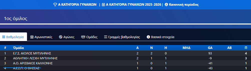 Βαθμολογίες Πρωταθλημάτων Τ.Ε. Ε.Ο.Κ. Λέσβου 2023-2024