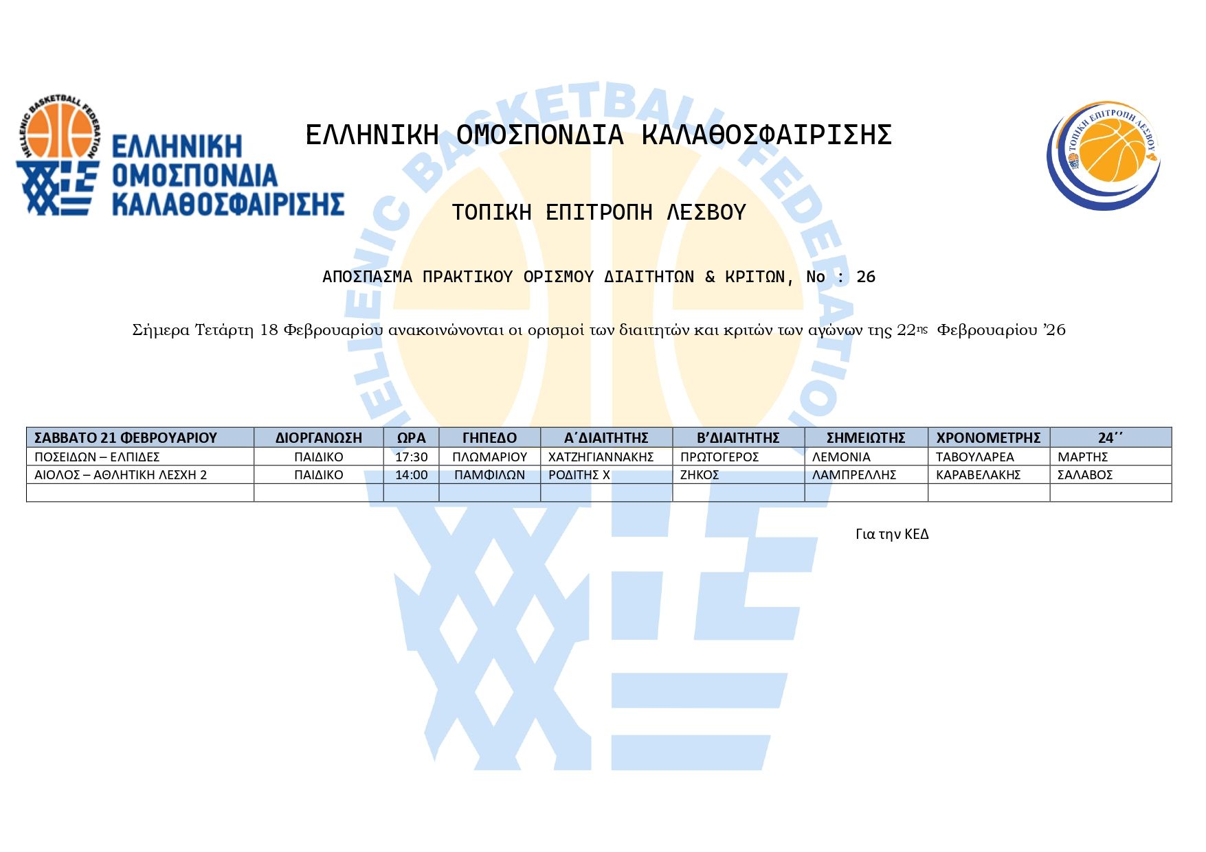 ΑΠΟΤΕΛΕΣΜΑΤΑ & ΒΑΘΜΟΛΟΓΙΕΣ ΑΓΩΝΩΝ 10-11/01/26 read more