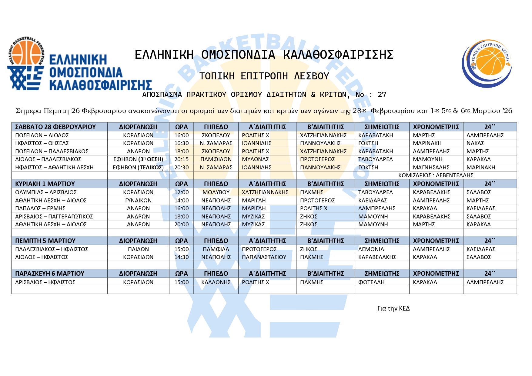 Βαθμολογίες Πρωταθλημάτων Τ.Ε. Ε.Ο.Κ. Λέσβου 2023-2024 read more