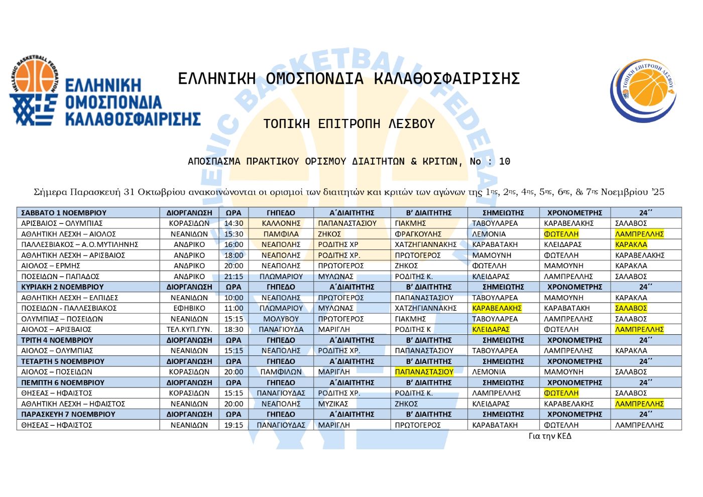 ΑΠΟΤΕΛΕΣΜΑΤΑ & ΒΑΘΜΟΛΟΓΙΕΣ ΑΓΩΝΩΝ 05-06-07/12/25