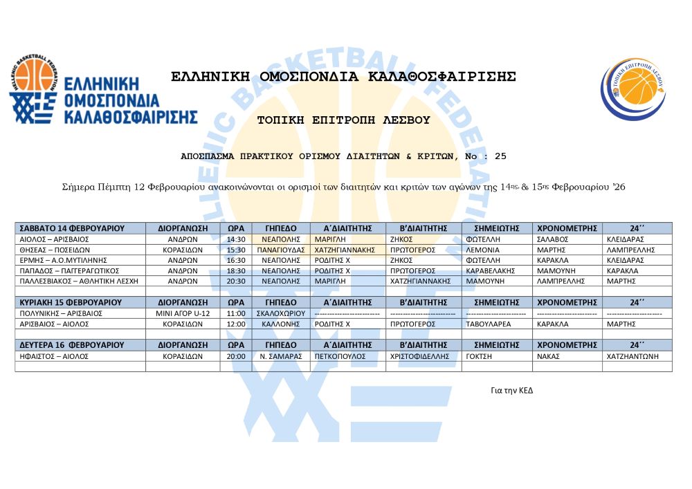 ΤΕΛΙΚΟΣ ΚΥΠΕΛΛΟΥ ΓΥΝΑΙΚΩΝ “ΕΛΕΥΘΕΡΙΟΣ ΓΙΑΝΝΑΚΕΛΛΗΣ” και αποτελέσματα αγώνων 21-22/12/24