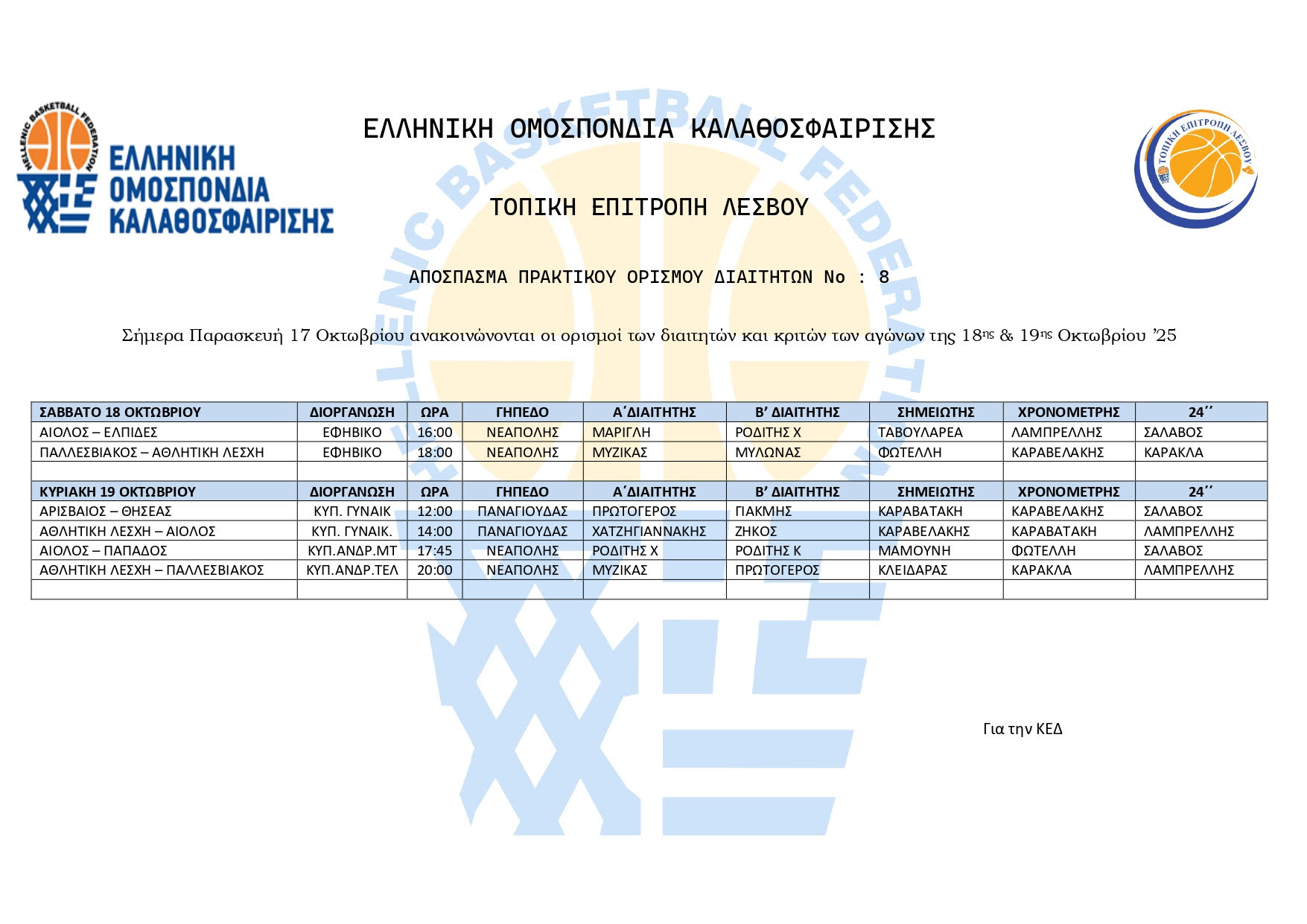 Βαθμολογίες Πρωταθλήματος Τ.Ε. Ε.Ο.Κ. Λέσβου 2023-2024 read more